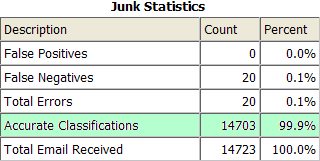 Agent's junk detection utilizes Bayesian filtering to classify junk messages. Bayesian filters are ideal for personal email because you train the filter to recognize exactly what you consider to be junk. Agent's adaptive junk filter is constantly learning to classify new words. Agent also implements "forgetting", a technique for expiring words which are no longer relevant. The result is a junk filter that keeps up with the evolving flow of spam messages. The rules-based filters used by ISPs can't match the precision of Agent's junk filters. Rules work well for the obvious junk. But, rules often generate false positives, valid emails classified as junk. Junk TrainingJunk training is easy in Agent. You simply move messages to the Junk folder by dragging and dropping or pressing Ctrl + J. Agent takes care of the rest. Remove a message from the Junk folder and Agent will reclassify the message as legitimate. Trusted ContactsAgent's junk detection is tightly integrated with Agent's address book and email filters. As a result, Agent can automatically recognize email from trusted contacts and avoid false positives by classifying the message as legitimate. If you try to junk a message from a trusted contact, Agent will ask you for a confirmation. In this example, the user is junking a message from PayPal and Agent recognized PayPal as a trusted domain in the address book. Since the user gets lots of phishing emails with a forged PayPal domain, they've elected to turn on junk detection for the paypal.com domain. Trusted contacts and domains are also used for Route by Identity. |